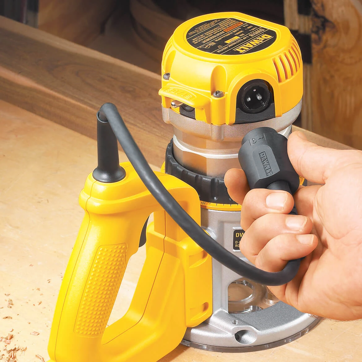 - The DeWALT DW618D 2-1/4 HP Heavy-Duty EVS D-Handle Router delivers maximum motor power for heavy-duty woodworking tasks. Its robust design ensures long-lasting performance.