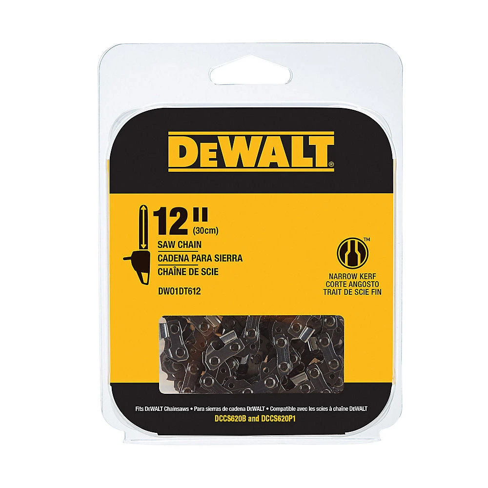 - Crafted by DeWALT, a leader in power tools and accessories, this 12″ chainsaw chain is built to withstand rigorous use and deliver consistent results.
