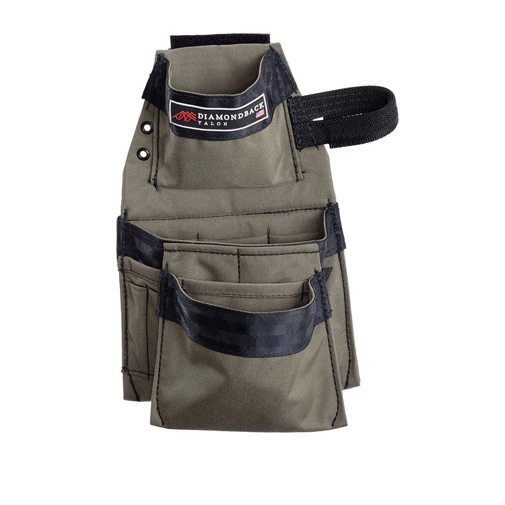 - The left side pouch features a sleek Ranger Green color and a secure Talon closure system, keeping your tools safe and easily accessible. Its compact design fits seamlessly with other Diamondback tool belt accessories.