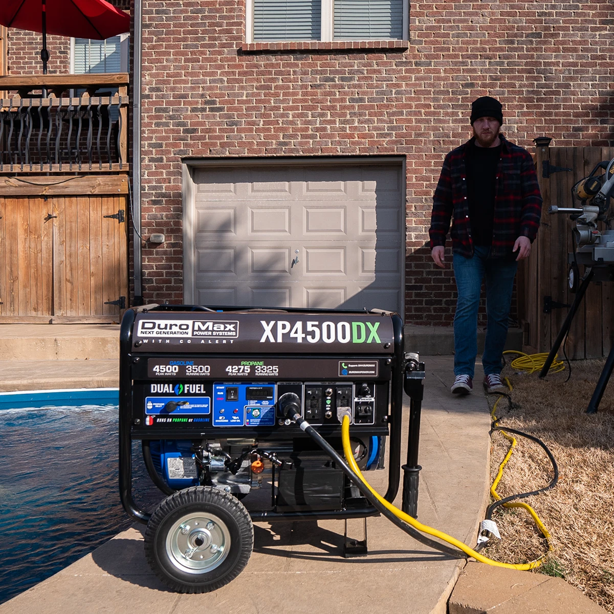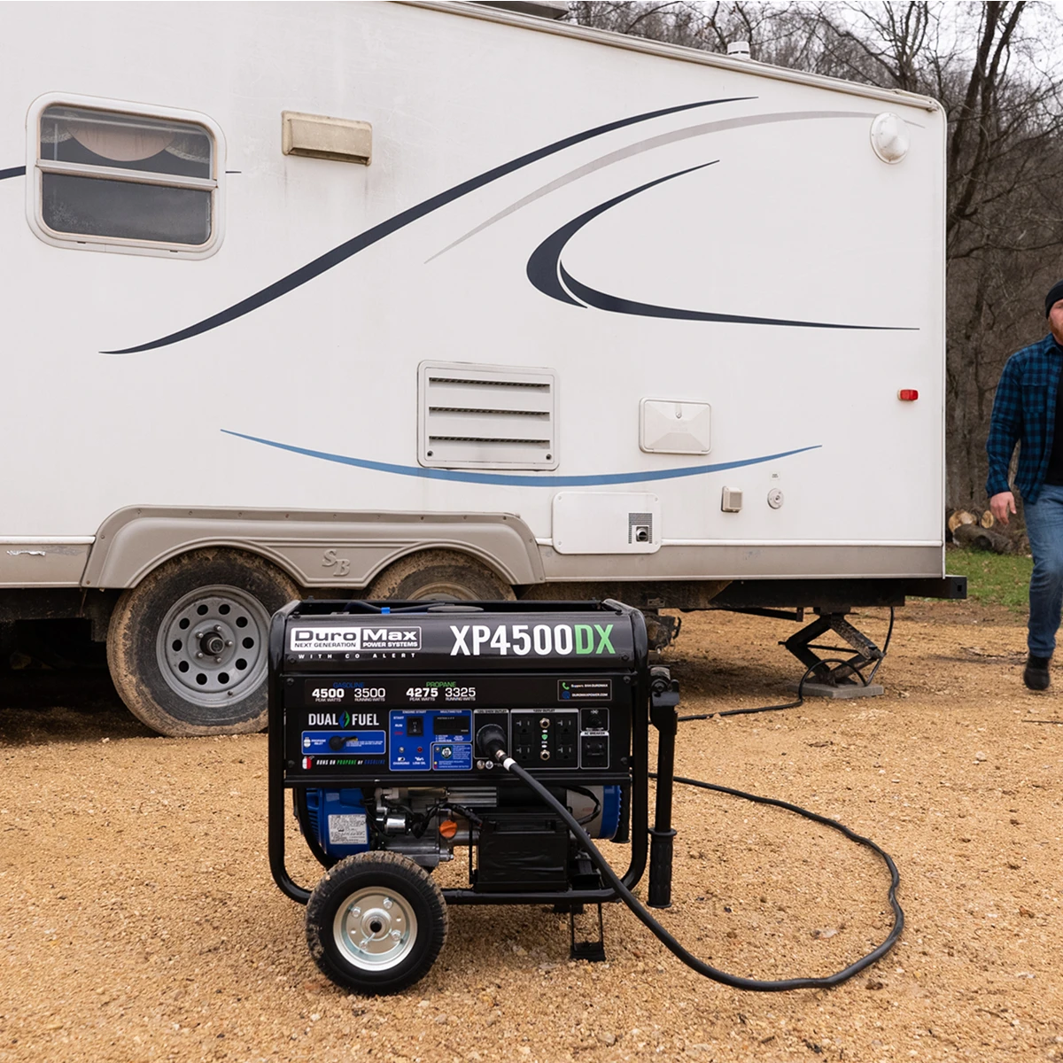 The XP4500DX packs a punch with 4,500 peak watts and 3,500 running watts of compact Dual Fuel power. Powered by our 212cc DuroMax engine, this generator is excellent for camping, RVs, power on the jobsite, and will run various household essentials such as lights and appliances when the power goes out.