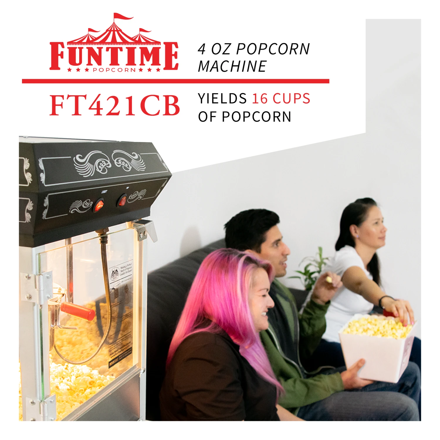 FunTime Carnival 4oz Tabletop Popcorn Machine, Black/Silver (FT421CB)