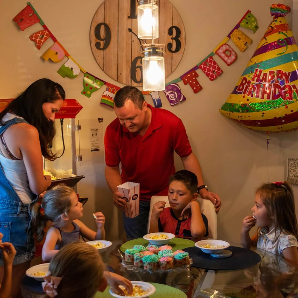 - 48 CUPS OF POPCORN: This popcorn machine yields about 3 gallons of popcorn. Perfect for birthday parties, movie nights, game days, backyard barbecues, school/ work events, and more!