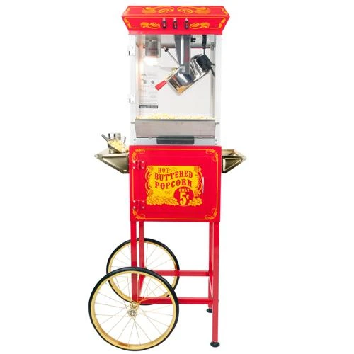 FunTime Sideshow 8oz Popcorn Machine with Cart, Red/Gold (FT862CR)