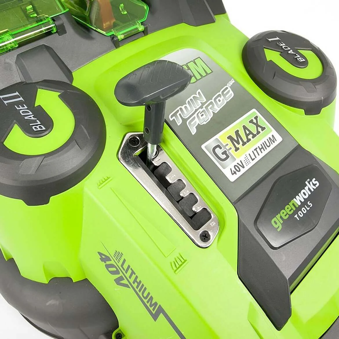 - The GreenWorks 25302 40V Cordless Twin Force Lawn Mower combines power and efficiency with its dual-blade system, ensuring a clean and even cut every time.