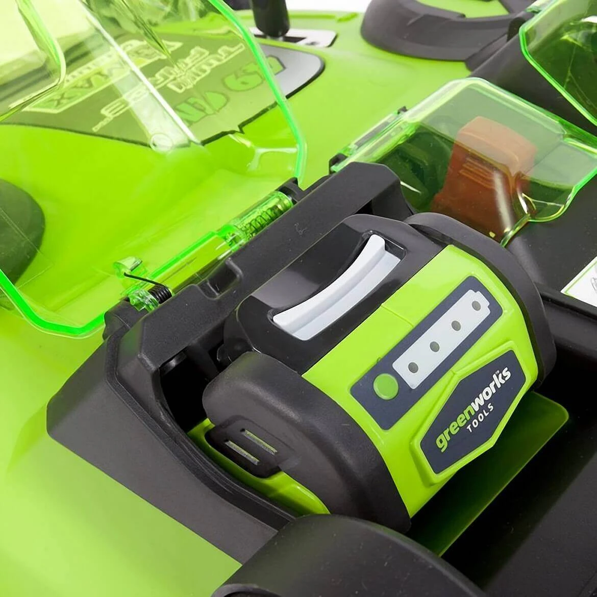 - Experience the convenience of cordless operation with no gas, oil, or emissions. The GreenWorks lawn mower is eco-friendly and easy to maintain.