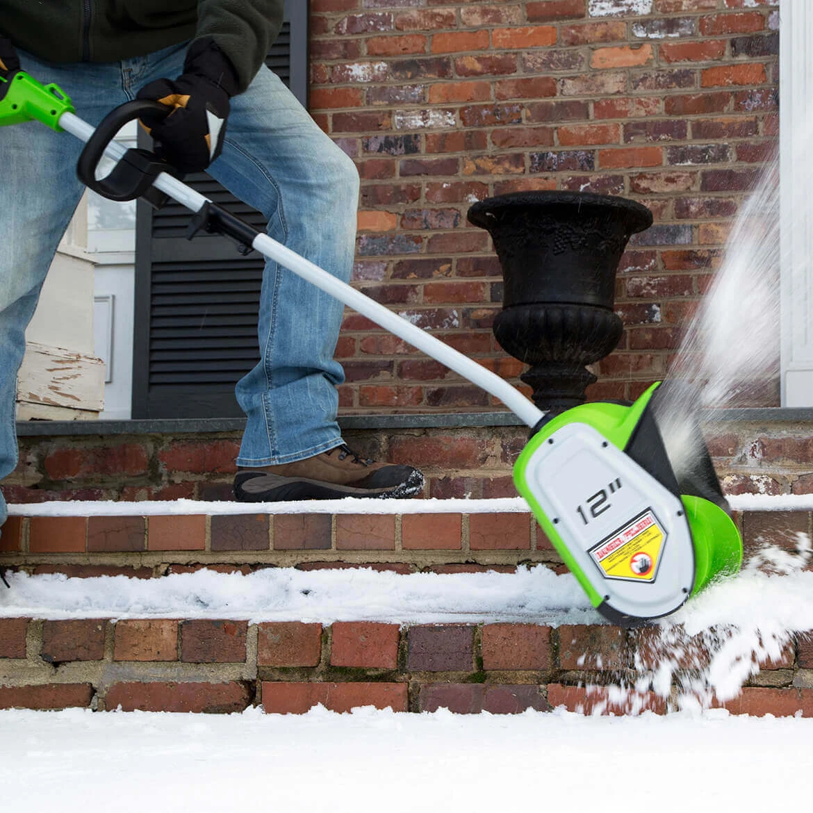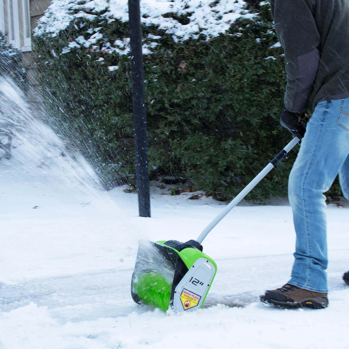 - Lightweight and ergonomically designed, the GreenWorks snow shovel reduces fatigue and makes it easy to maneuver in tough winter conditions.