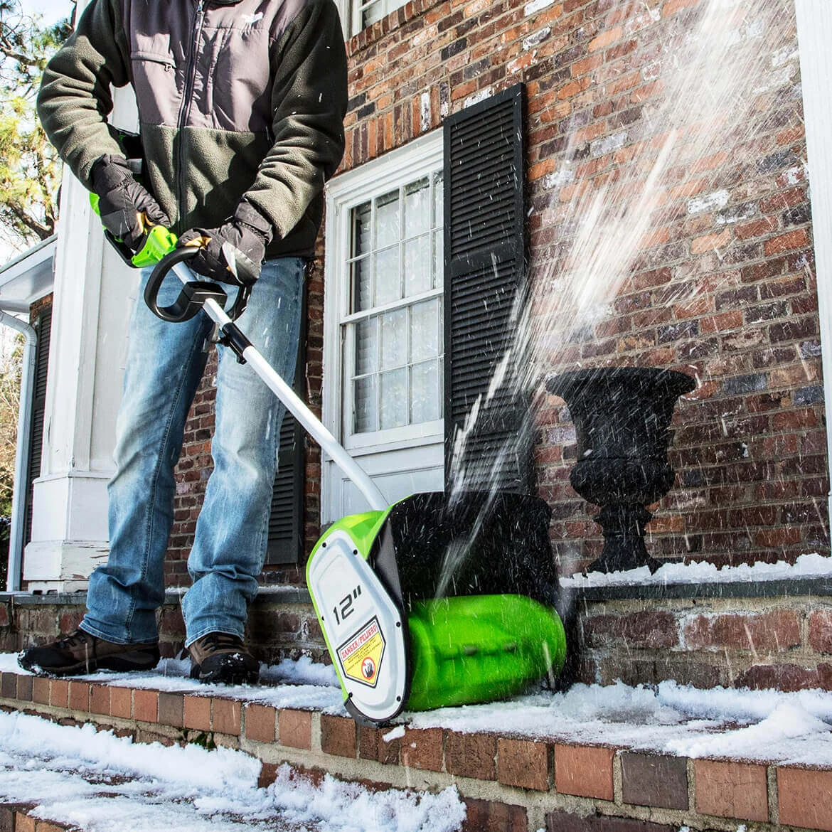 - Powered by GreenWorks’ 40V GMAX lithium-ion battery system, this snow shovel delivers reliable performance without the hassle of gas, oil, or cords.