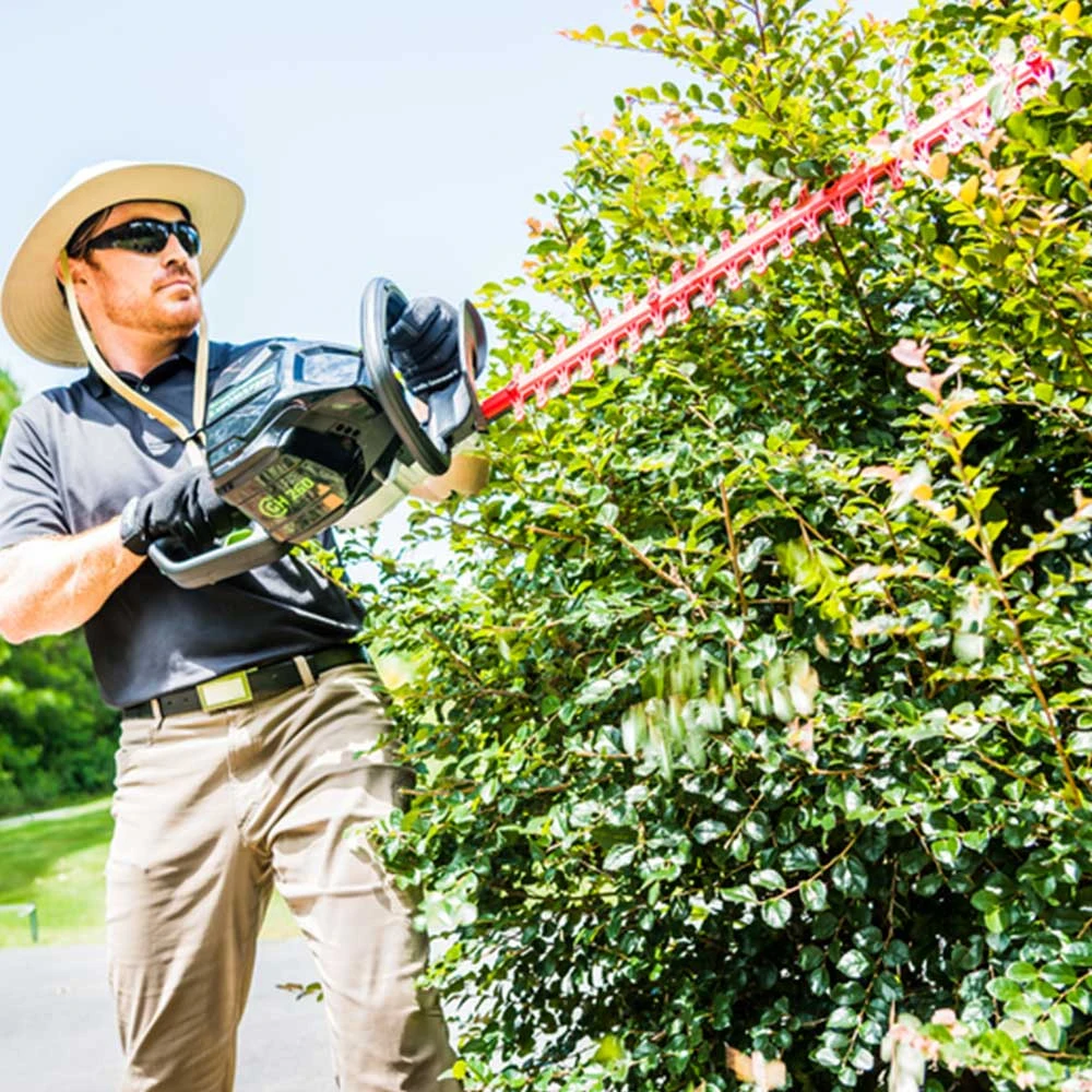 - Powered by GreenWorks’ 82V lithium-ion battery system (battery not included), this hedge trimmer delivers consistent power for trimming thick branches and shrubs with ease.