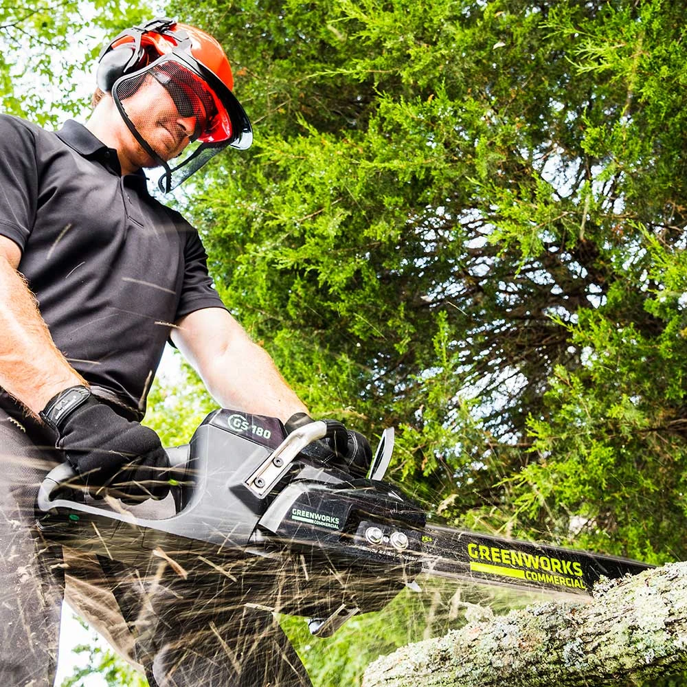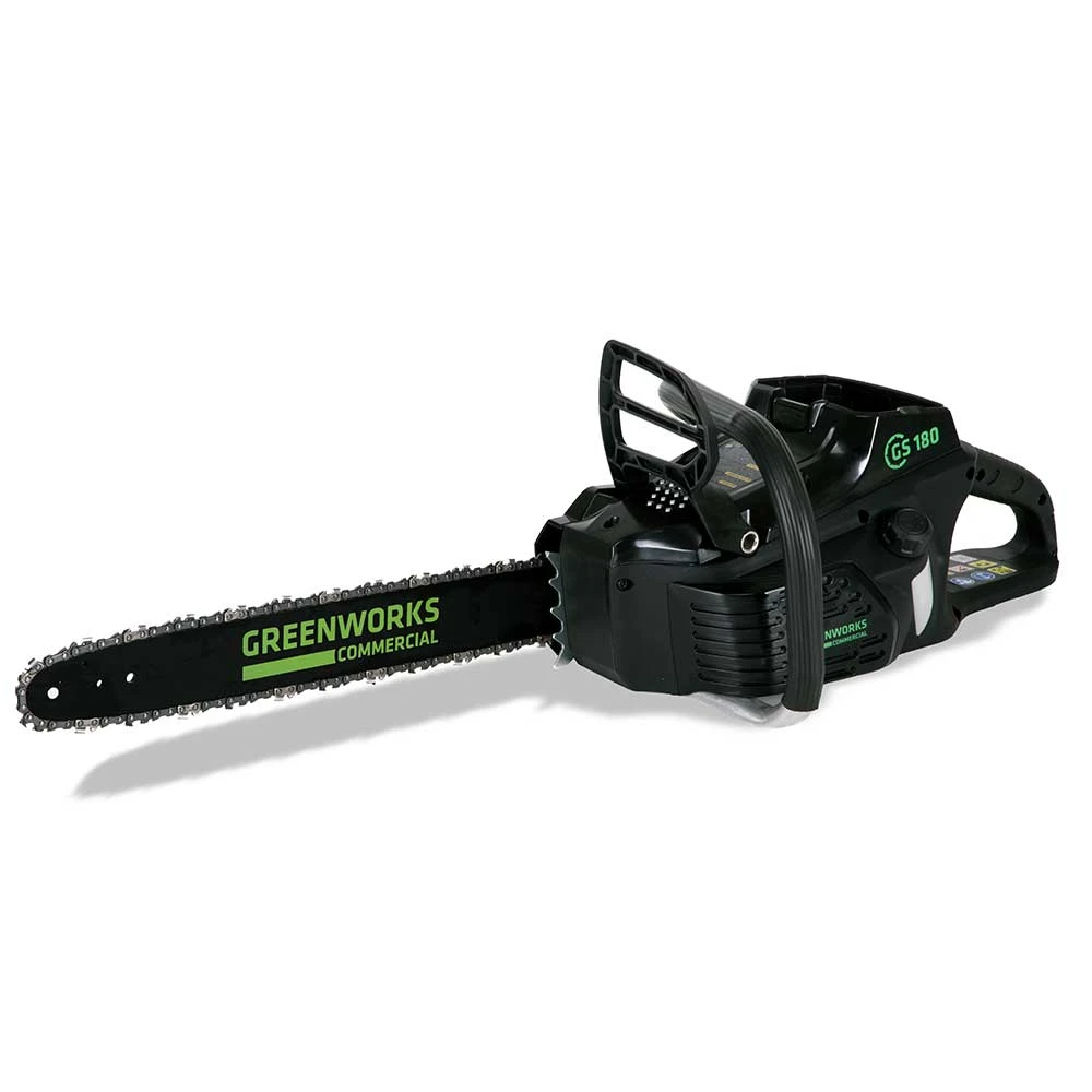- Experience the convenience of cordless operation with the GS180 Chainsaw, powered by GreenWorks’ reliable 82V battery system, ideal for both professional and residential use.