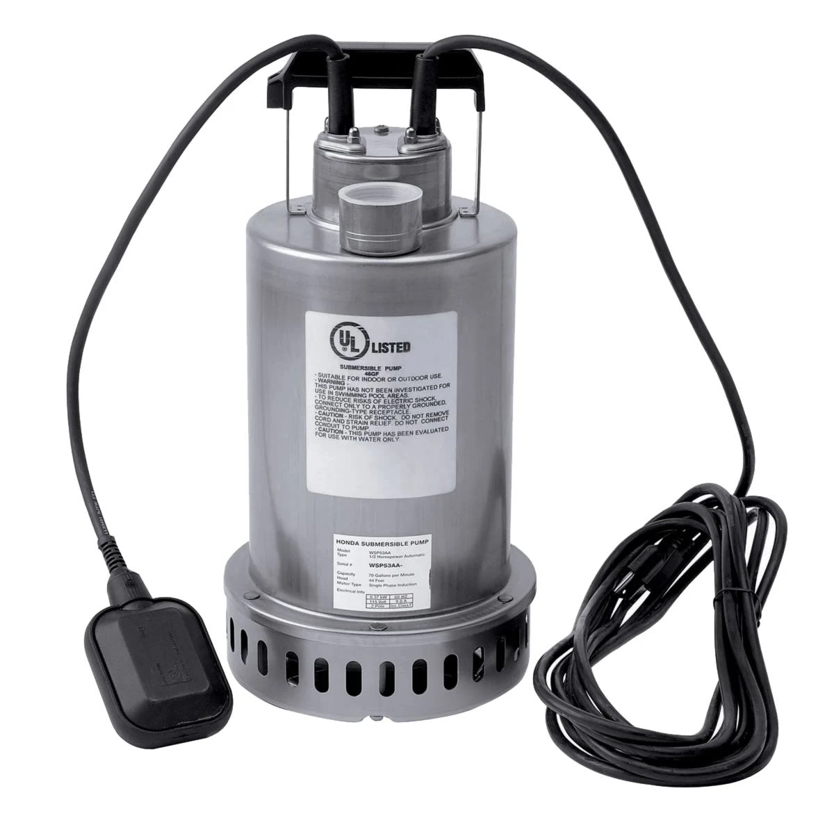 - The Honda WSP53 Submersible Water Pump delivers exceptional performance with its 1/2-HP motor and 70-GPM flow rate, perfect for draining pools, flooded areas, or transferring water.