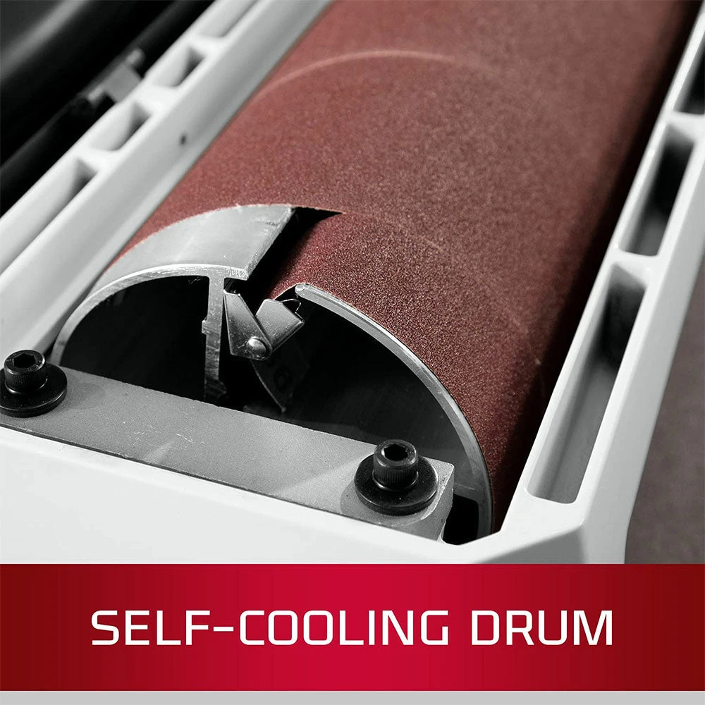 - Precision-machined and dynamically balanced extruded aluminum drum is designed to dissipate heat and protect the work surface from heat-damage