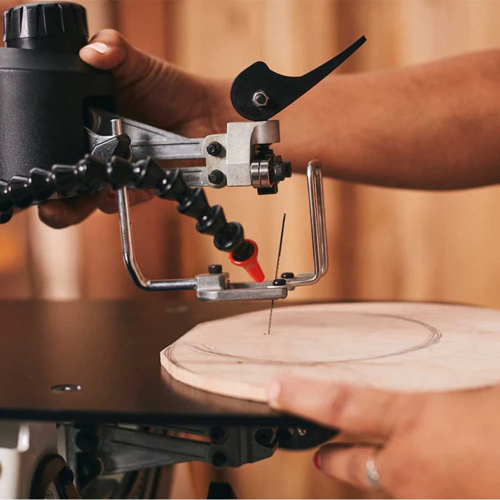 - Equipped with a 120-volt motor and a slotted table, this scroll saw offers variable speed control, allowing you to adjust the cutting speed to suit various materials and project requirements.
