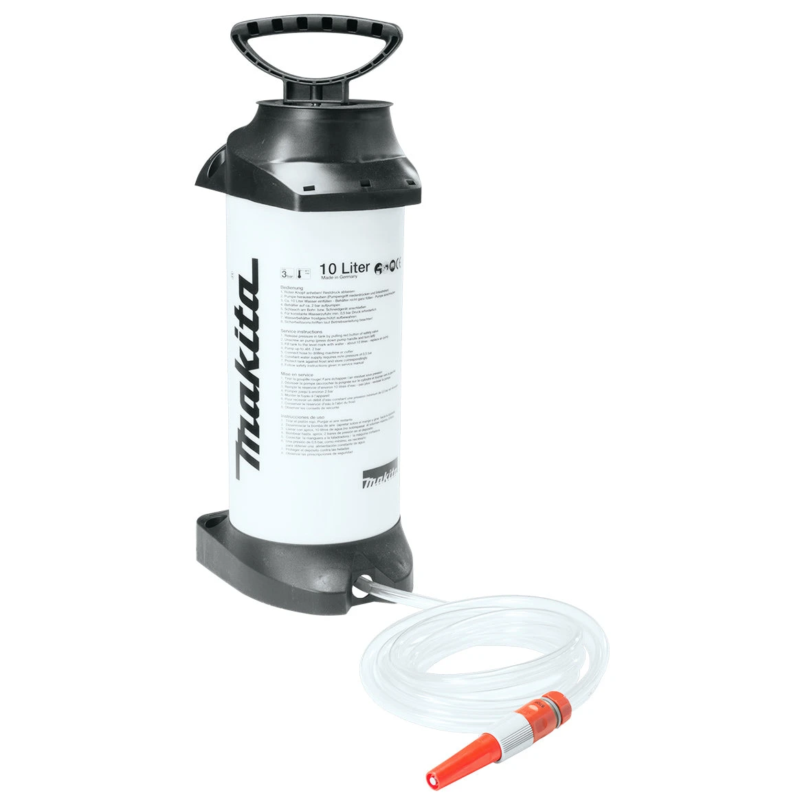 - The Makita 988-394-610 2.6-Gallon Poly-Carbonate Pump Pressurized Water Tank is designed for efficient and reliable outdoor spraying. Ideal for gardening, lawn care, and other outdoor tasks.