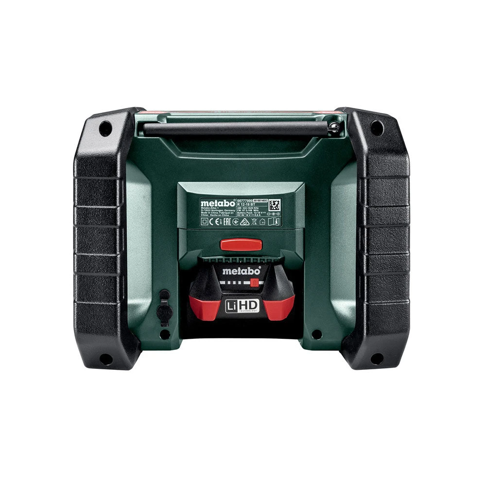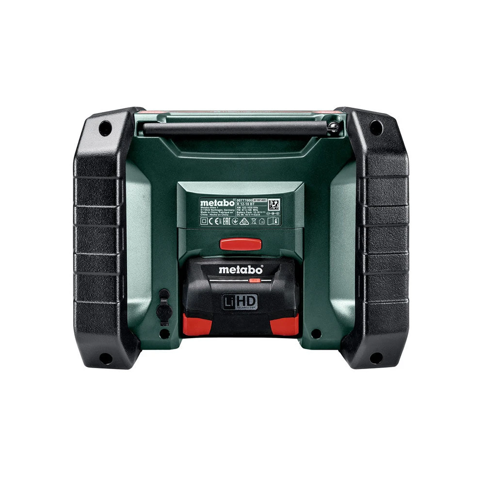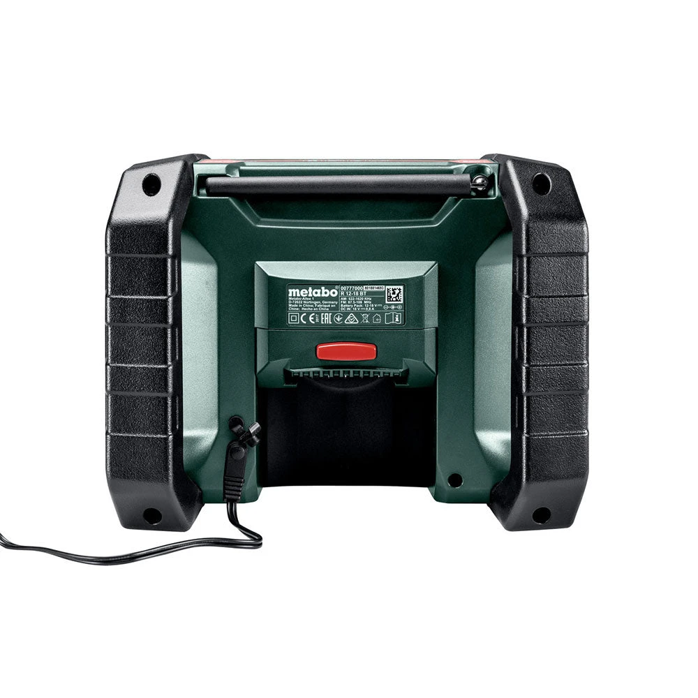- Compatible with Metabo 12V-18V batteries (sold separately), this bare tool radio offers flexibility and convenience for cordless operation on construction sites or DIY projects.