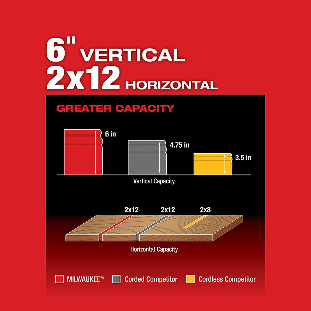 | 45 Bevel Cut Capacity | 2 x 12 |