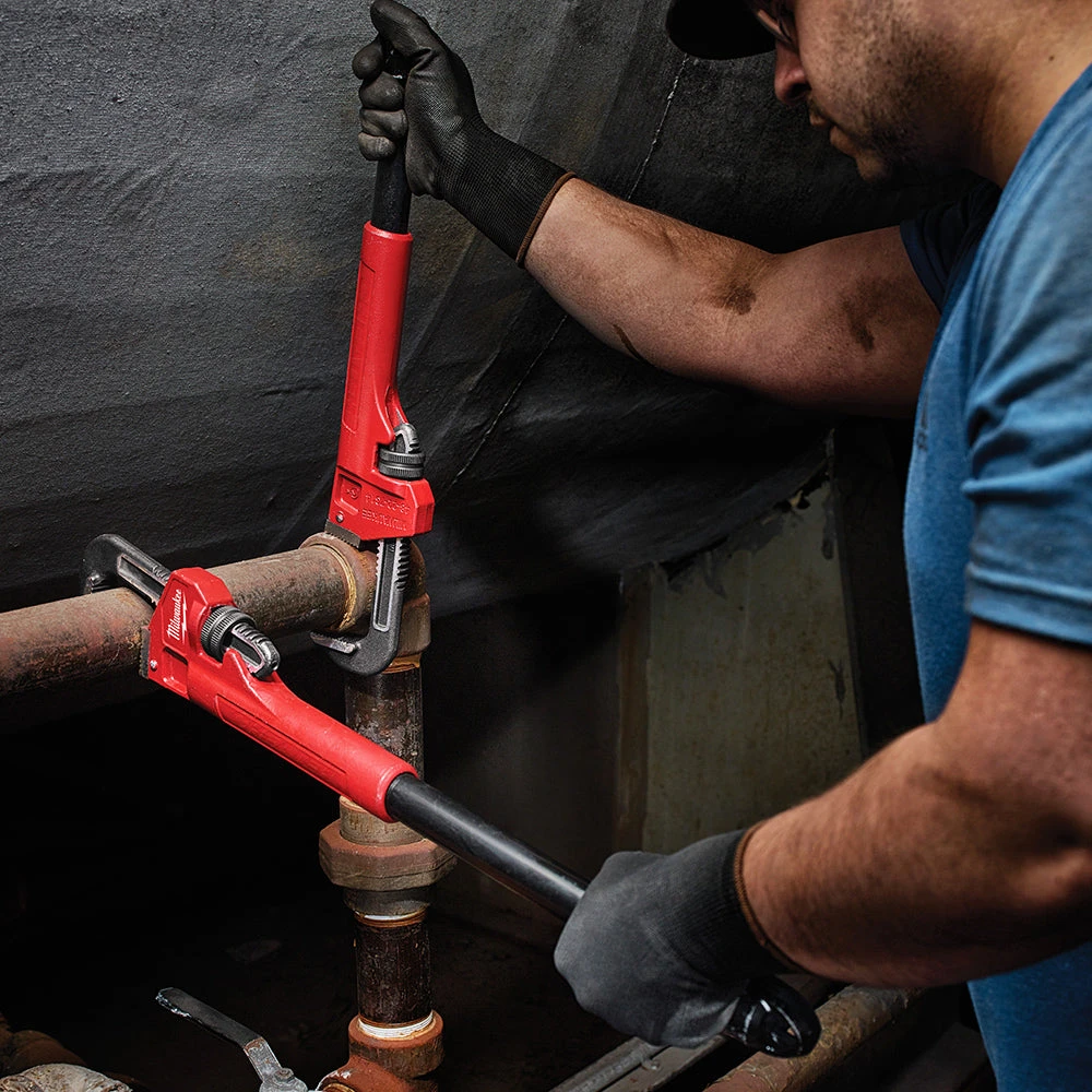 Milwaukee 48-22-7314 21.80-Inch Steel Ergonomic Overbite Cheater Pipe Wrench – Heavy-Duty Hand Tool