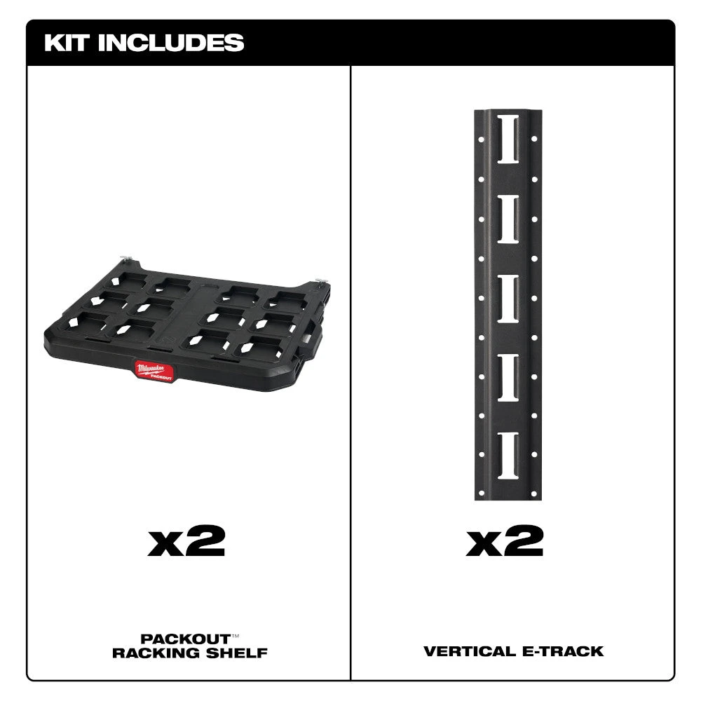- Kit includes 2-PACKOUT Shelves and 2-20” E-Track Sections