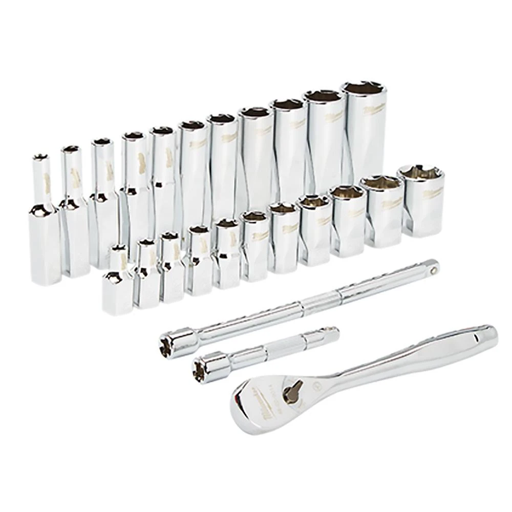 - Milwaukee 1/2, 1/4, 11/32, 3/16, 3/8, 5/16, 5/32, 7/16, 7/32, 9/32-Inch Deep Well Socket – 48-22-9404
