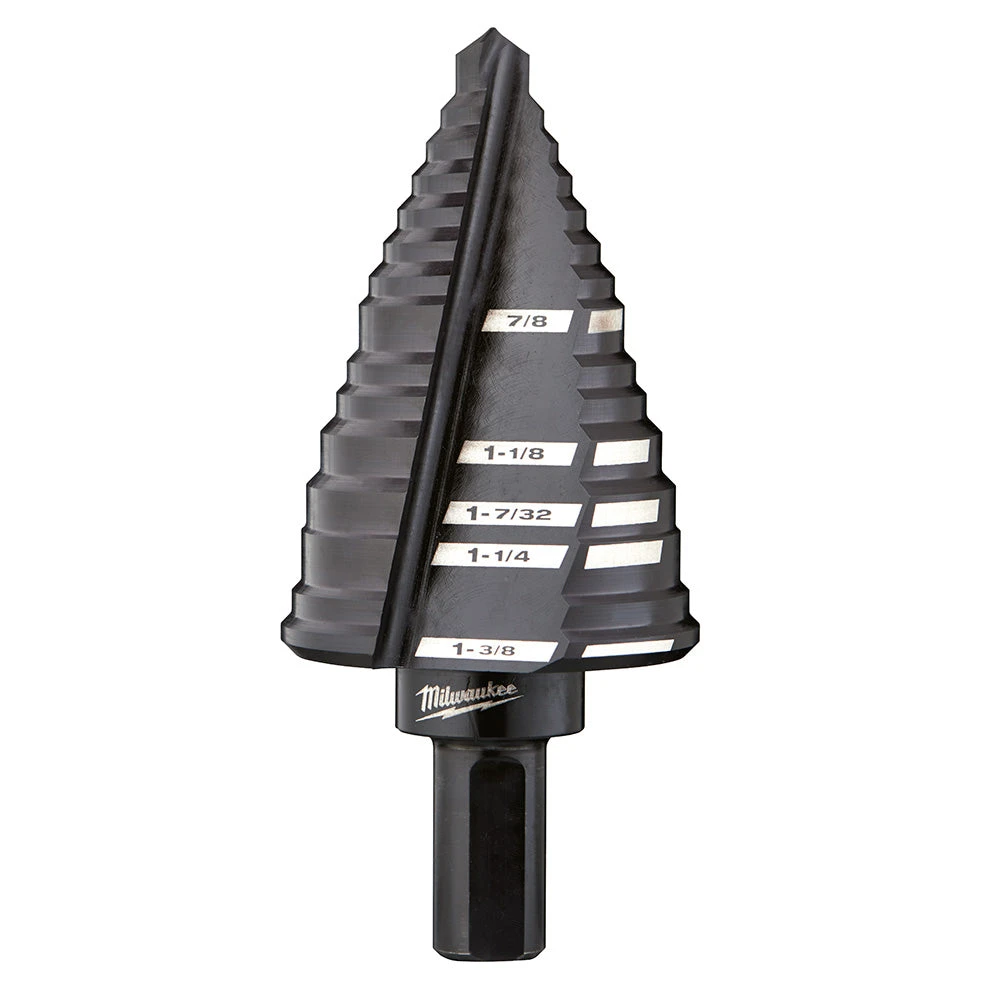 - The Milwaukee 48-89-9212 #12 JAM FREE Step Drill Bit is engineered for precision and durability, offering a smooth drilling experience from 7/8″ to 1-3/8″.