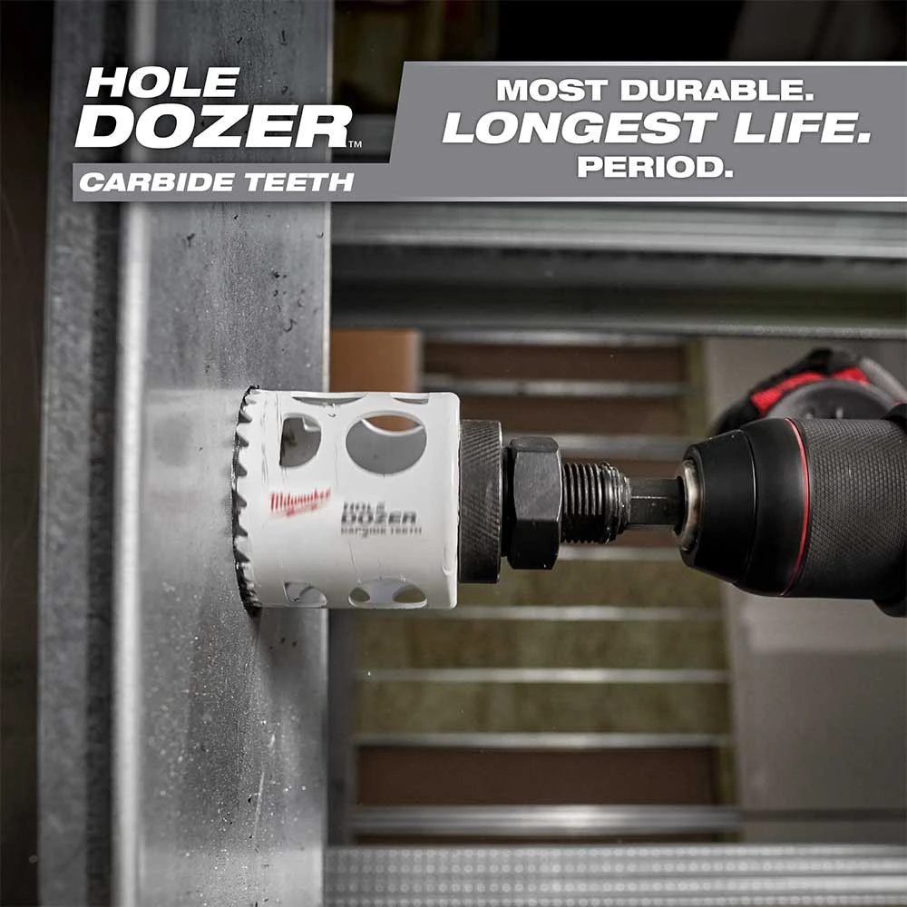 - Milwaukee’s HOLE DOZER kit is engineered for maximum efficiency, reducing heat buildup and extending the life of the hole saws.