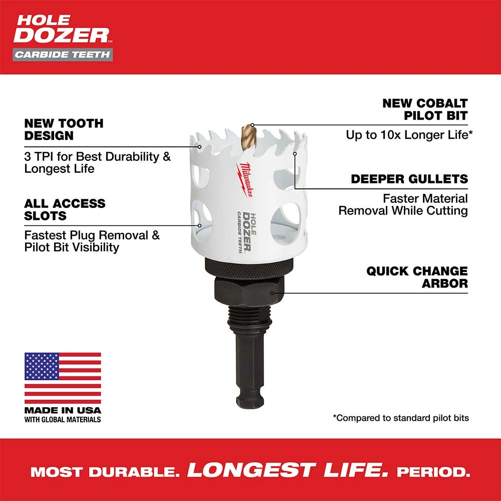 - The Milwaukee 49-22-3090 HOLE DOZER 12-Piece Carbide Hole Saw Kit is designed for durability and precision. Each hole saw features carbide teeth for long-lasting performance.