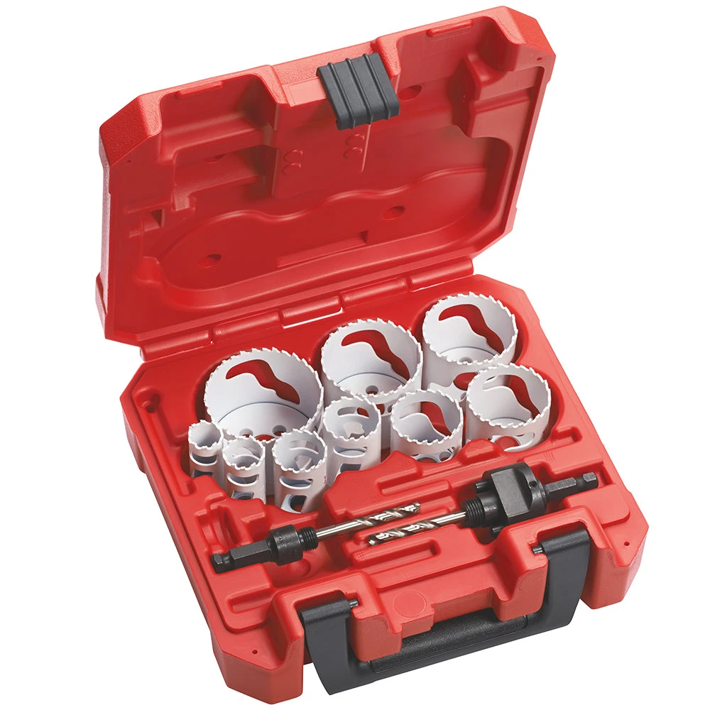 - This kit includes a range of hole saw sizes from 3/4” to 4-1/8”, making it versatile for different drilling needs. Each saw features a bi-metal construction for long-lasting performance.