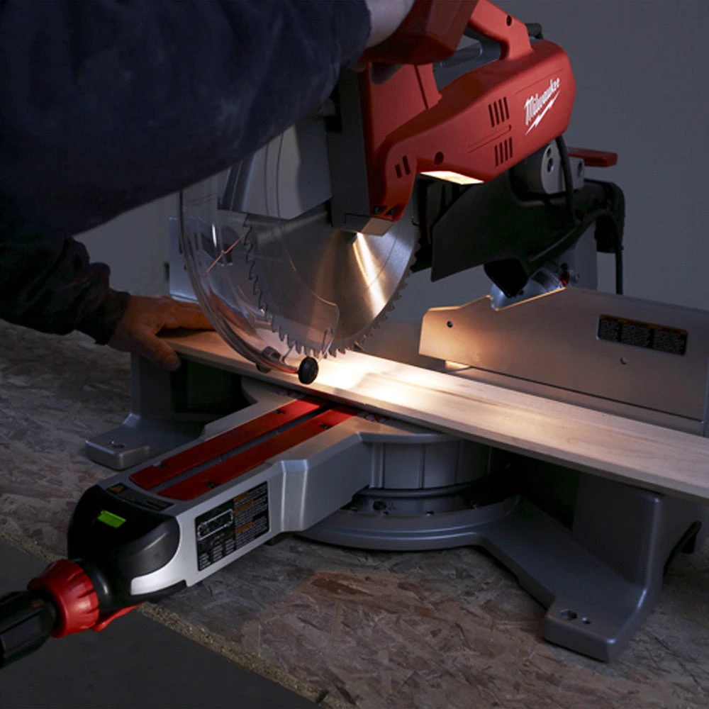 - Dual Integral Jobsite Lights- fully illuminate the work piece and cut line from either side of the blade