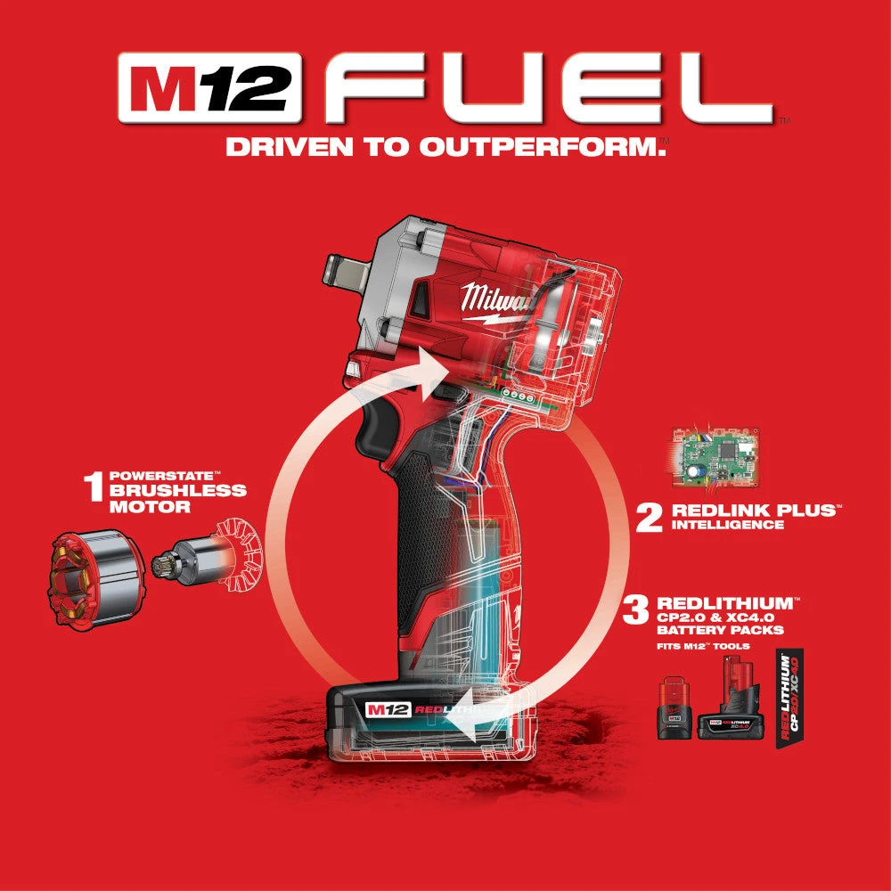 - Milwaukee M12 12-Volt FUEL 1/2-Inch Cordless Stubby Impact Wrench Kit – 2555-22
