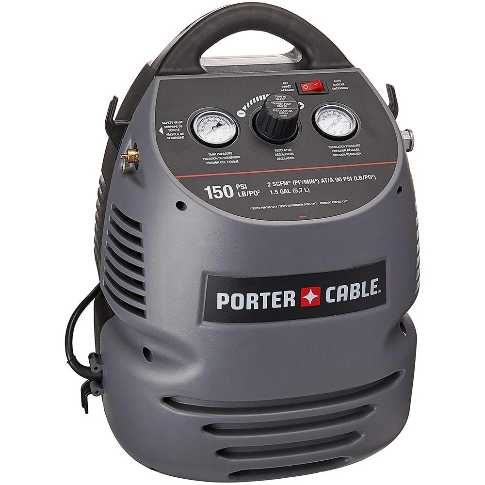 - Porter Cable 1.5 Gallon Oil Free Fully Shrouded / Hand Carry Compressor Kit with 25 inch hose – CMB15
