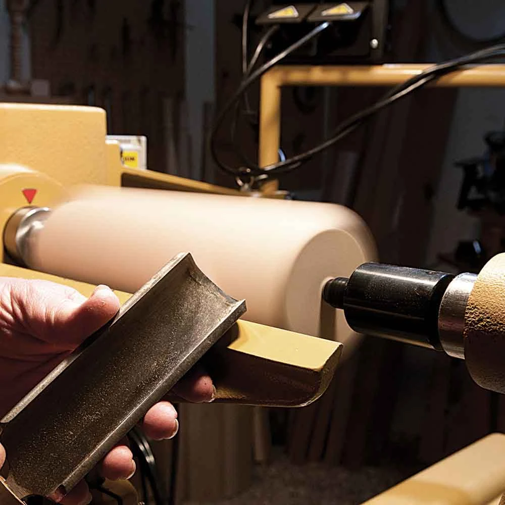 - This lathe includes a convenient lamp kit, ensuring optimal visibility during detailed woodturning projects. The lamp is adjustable, providing focused light exactly where you need it.