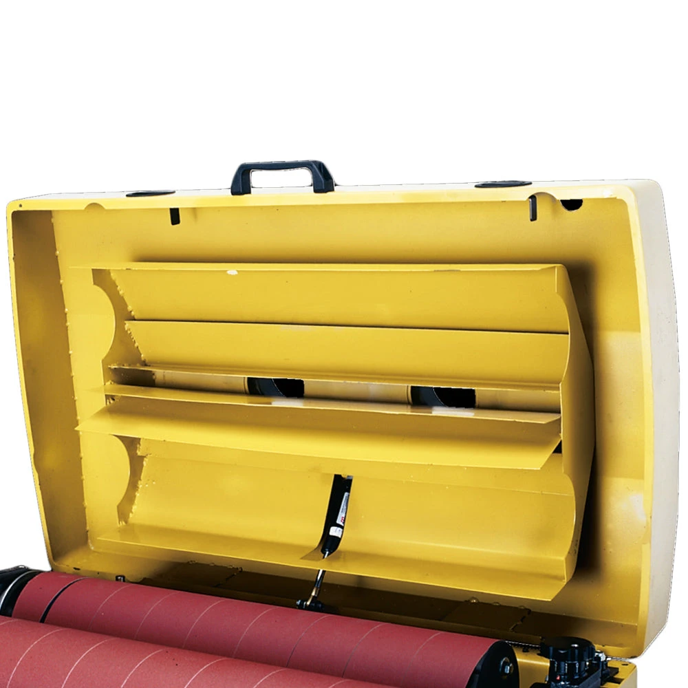- This dual drum sander features two-speed operation, allowing you to switch between 1000 and 1400 RPM for optimal performance on various materials. The 25″ drum width ensures wide coverage for faster project completion.