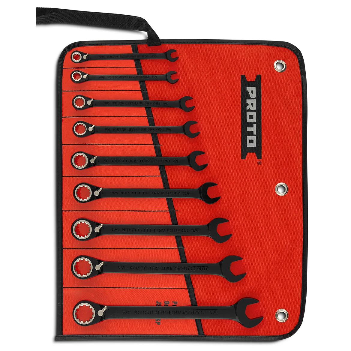 - The Proto JSCV-9S Black Spline Reversible Combination Ratcheting Wrench Set is a must-have for any professional toolkit. This 9-piece set is designed for heavy-duty use, offering unmatched durability and precision.