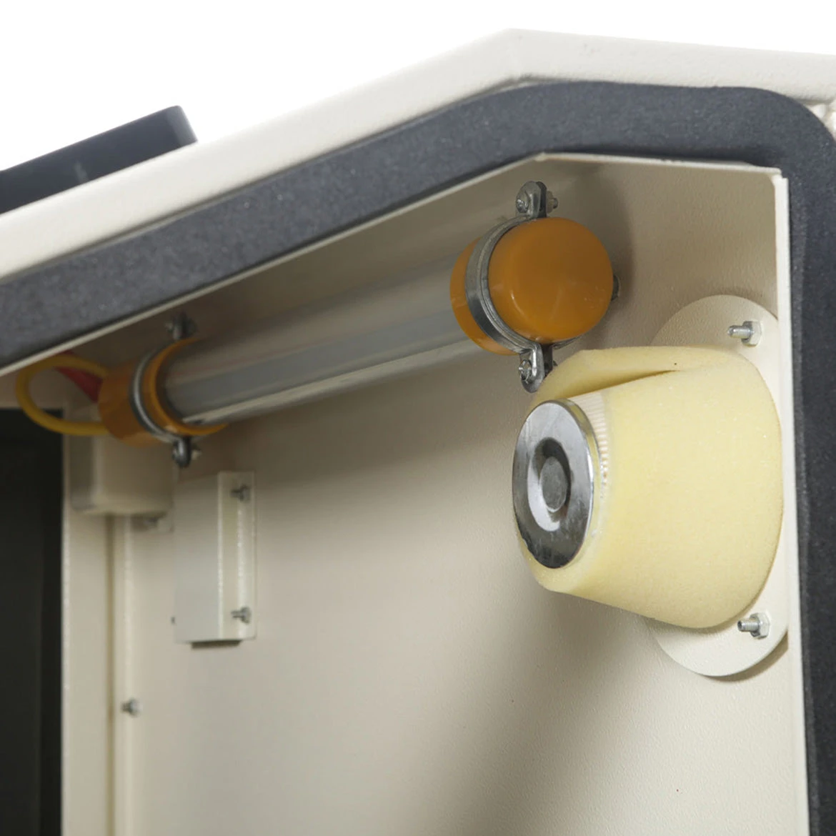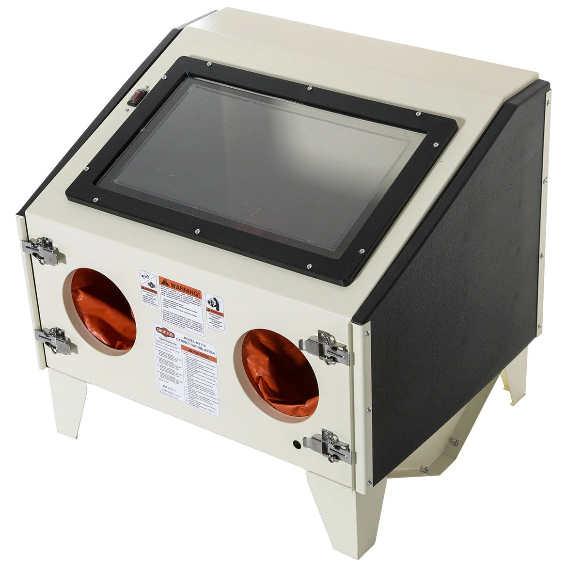 - Includes blasting gun with ceramic tips, built-in fluorescent lamp, and sealed glove ports