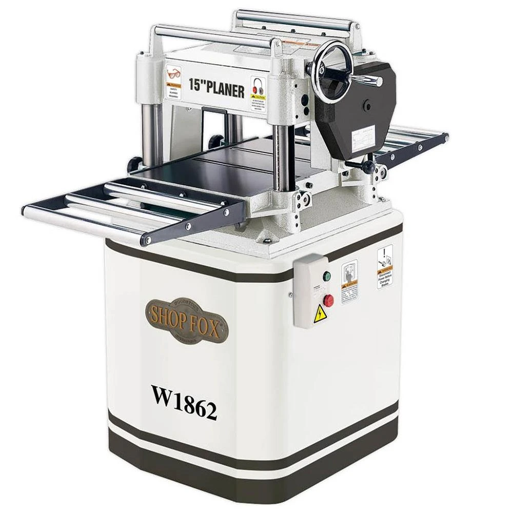 - The Shop Fox W1862 is a powerful 15-inch stationary planer designed for professional woodworkers. With a 3 HP motor and 240V single-phase power, it delivers smooth, precise planing every time.