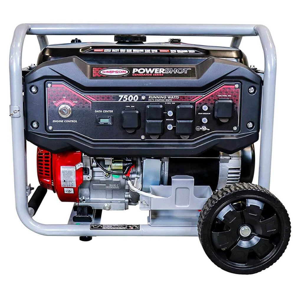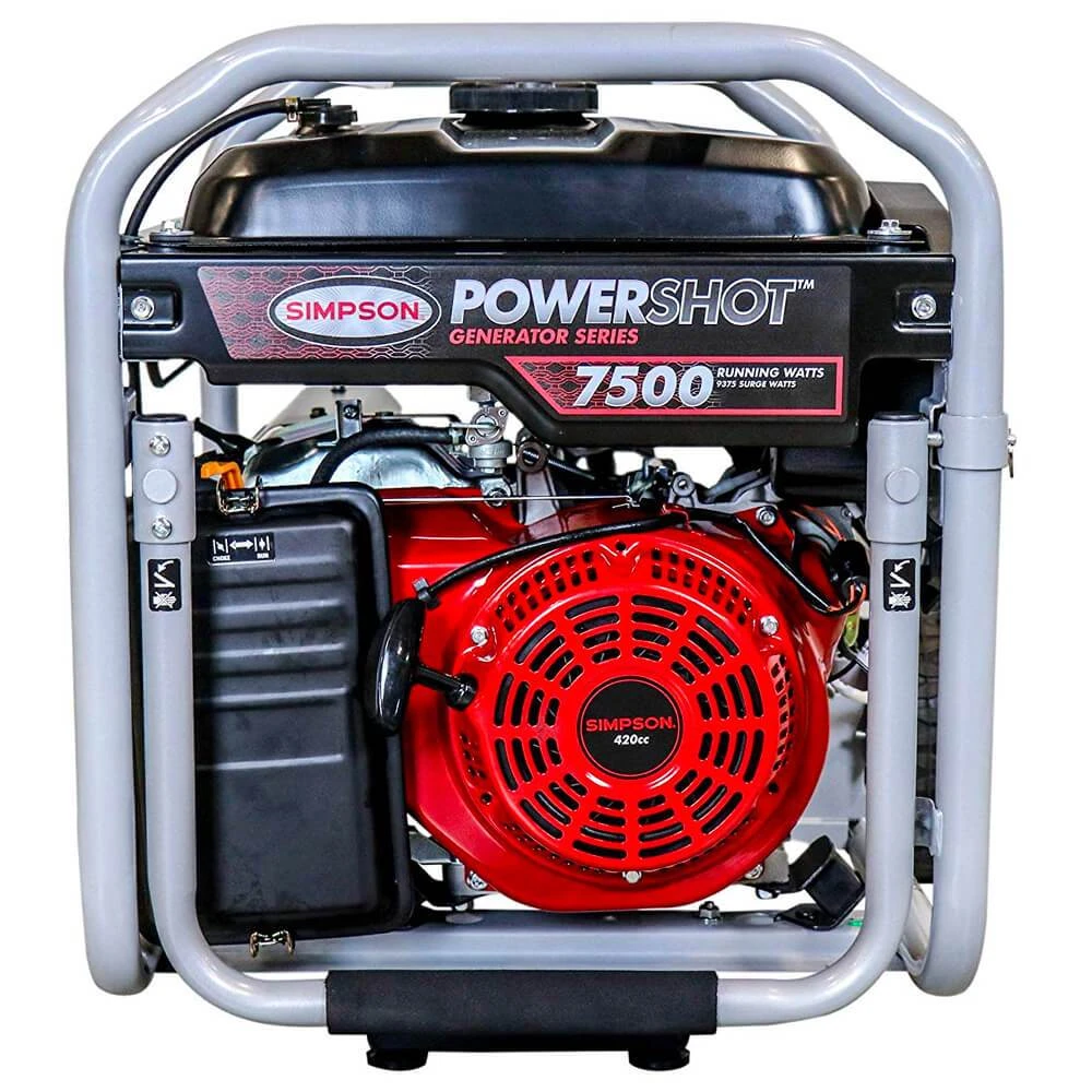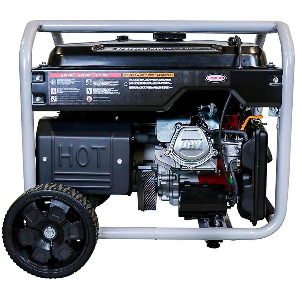 - The Simpson SPG7593E is a powerful 7,500-Watt portable generator designed for reliability and efficiency. Its OHV gas engine ensures optimal performance for home backup, job sites, and outdoor activities.