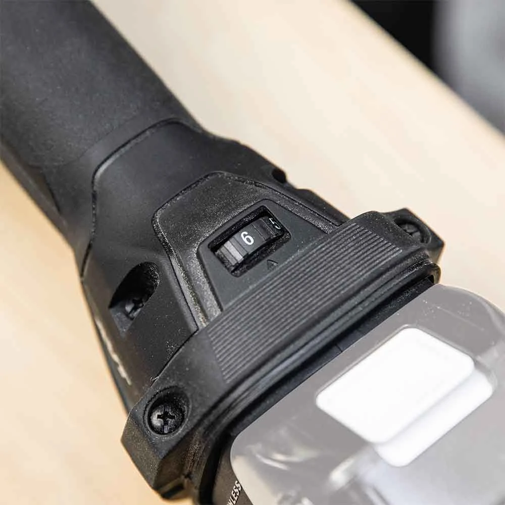 - Makita-built brushless motor with variable speed control dial (10,000-20,000 OPM) enables user to match the speed to the application