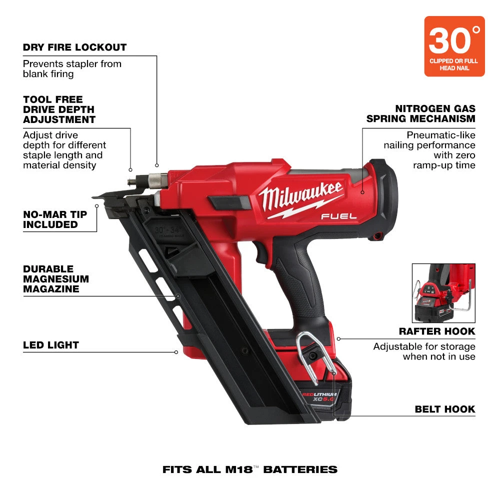 - M18 FUEL 30 Degree Framing Nailer – 2745-20