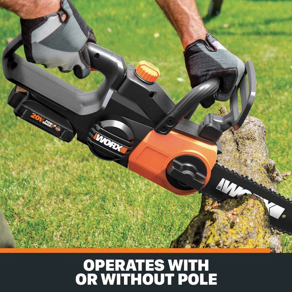 WORX WG323 20V 10″ Lithium-Ion Cordless Pole/Chain Saw with Auto-Tension – Lightweight & Efficient for Lawn & Outdoor Use