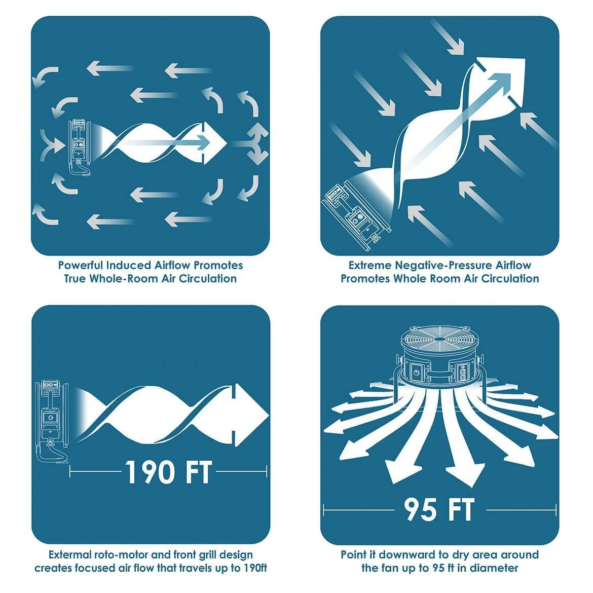 - Enjoy customizable airflow with 5-speed settings, allowing you to adjust the fan’s performance to suit your needs. Perfect for cooling large spaces or improving ventilation.